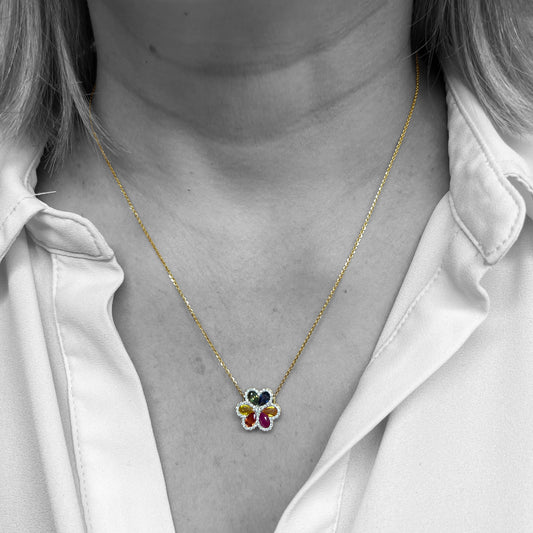 14ky Rainbow Sapphires Flower Necklace