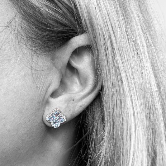 14kw Aquamarine and Diamond Clover Earrings